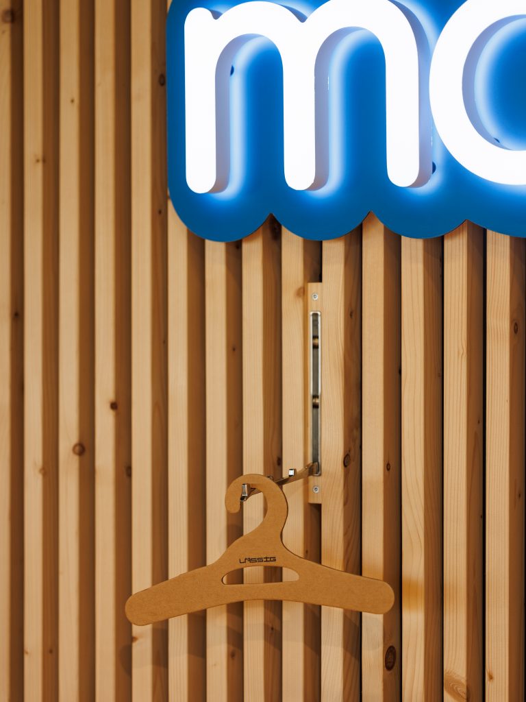 Auf einer Fläche von 170 m² wurde eine ehemalige Tierhandlung zu einem modernen Kindermodefachgeschäft umgebaut. Grundlage des Projekts war ein ganzheitliches Gestaltungskonzept, das Innen- und Außenraum gestalterisch miteinander verbindet und eine durchgängige Formensprache sowie Materialität schafft.